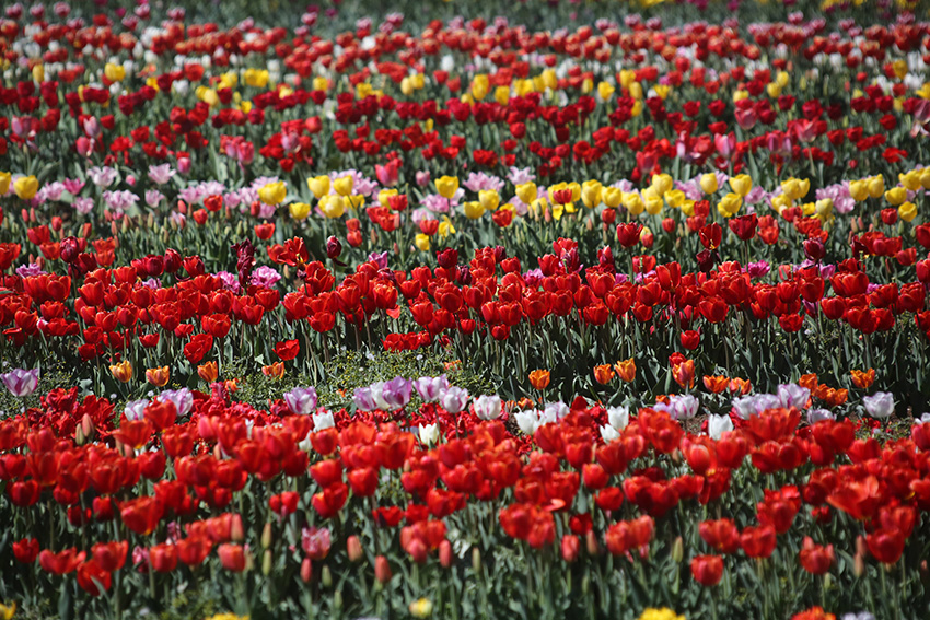 当地时间2022年4月7日,意大利罗马,郁金香公园里的郁金香花盛放。据悉,郁金香公园是意大利首个郁金香主题公园。