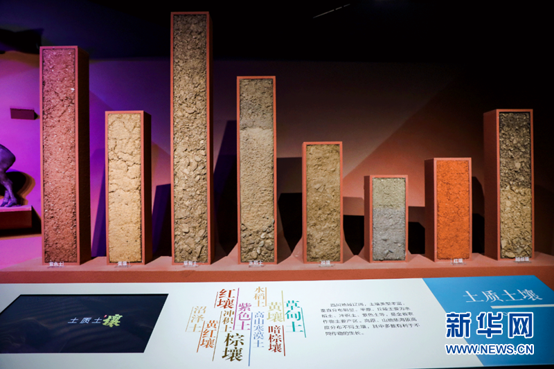 循环播放的动画影像展示了四川水系的发展演变历程;8种土壤模型,通过高低差显示其在四川全省的占比;人物浮雕、多媒体互动显示屏、动画影像等技术,让宝墩人的生产生活场景再现在人们眼前,多方位展示宝墩遗址的发掘历程、研究成果。