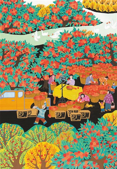 展出作品不仅题材多样,呈现形式也有新意,既有木版画、民俗画、农民画、国画、水彩画和剪纸拼贴等,还有运用新技术、新手段创作的综合绘画、数字绘画等。
