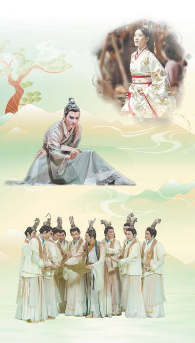 图片从上至下依次为综艺节目《舞千年》剧照、国风舞蹈《纸扇书生》《孔子》剧照。